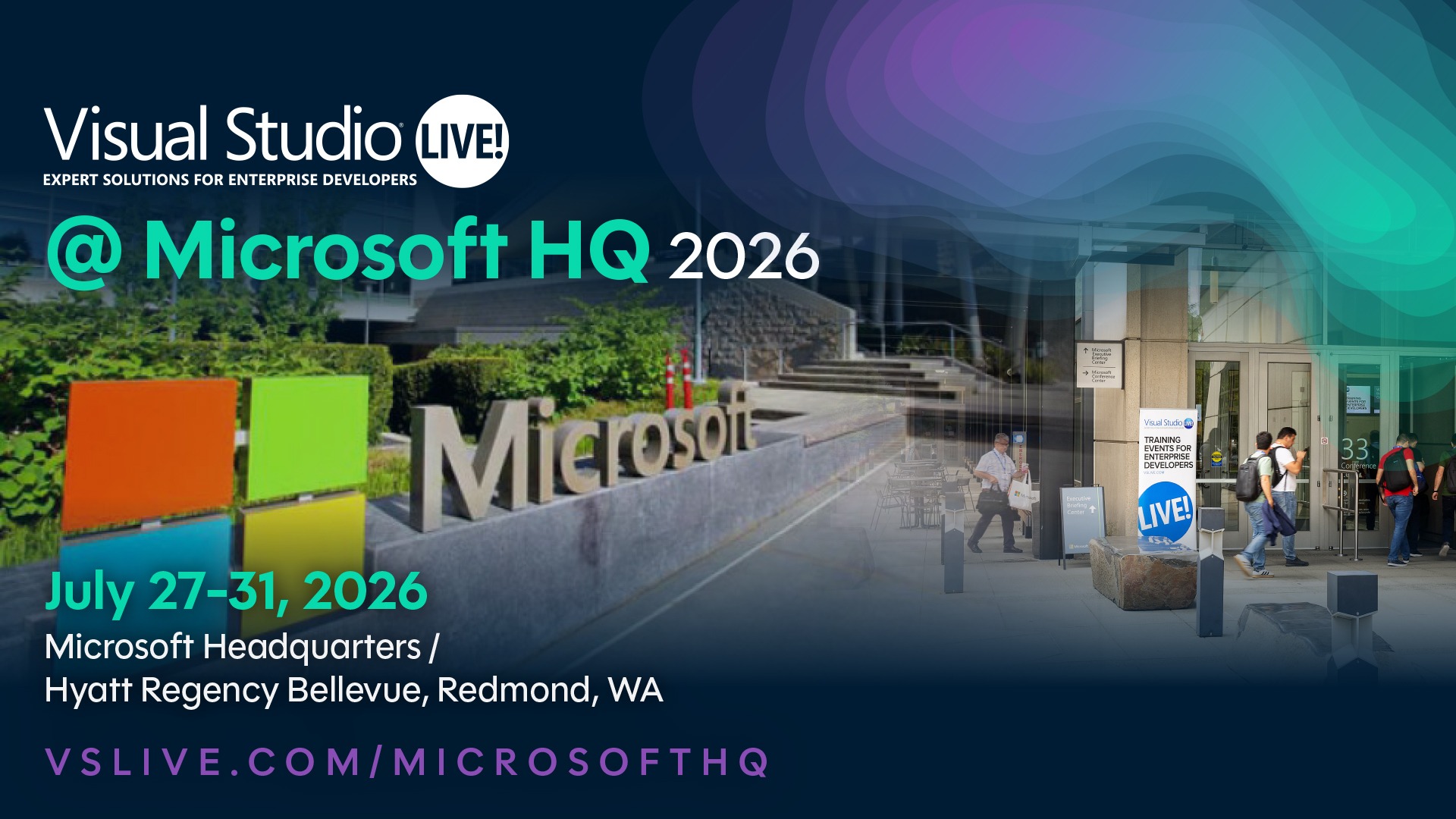 Visual Studio Live! @ Microsoft HQ takes place on the Microsoft campus in Redmond, Washington, offering five days of sessions across nine focused tracks. The event also includes hands-on labs, workshops, a two-day hackathon, Microsoft campus tours, Ask the Experts sessions, and keynotes from Microsoft leaders.