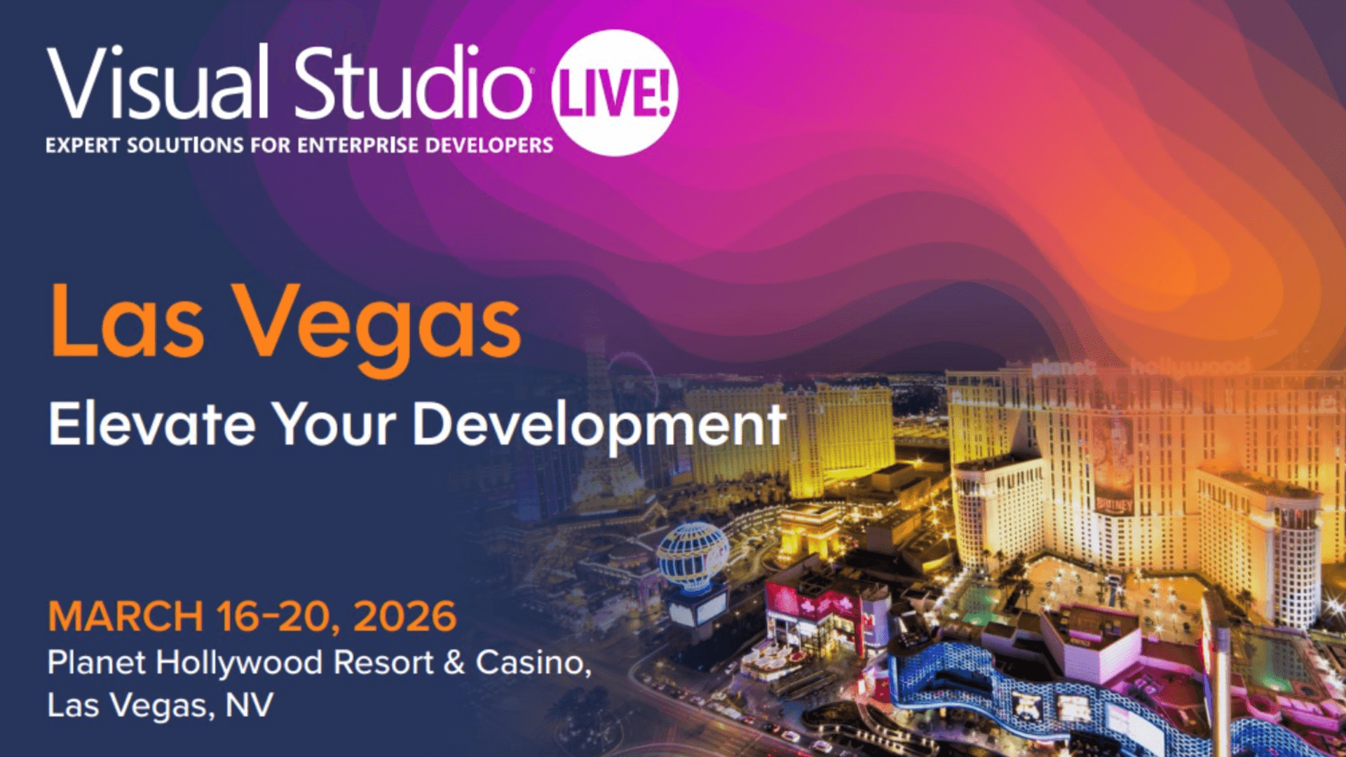 Visual Studio Live! Las Vegas is a five-day developer conference focused on the latest innovations across the Microsoft ecosystem. Join us in Las Vegas for expert-led sessions, workshops, and hands-on labs covering .NET, Visual Studio, Azure, GitHub Copilot, Blazor, MAUI, AI, and modern data technologies.